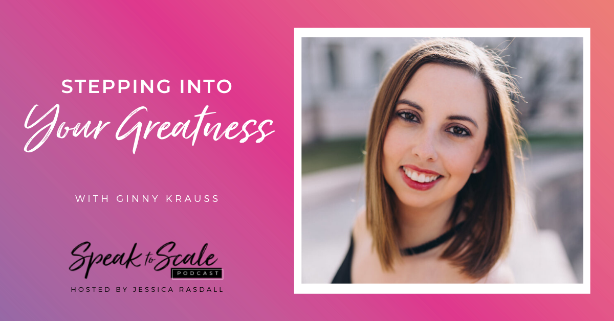 When you think about speaking: grabbing that microphone, stepping onto the stage and pouring into your people, how do you envision yourself? Can you feel those beads of sweat starting to appear as your heart beats like a drum? Maybe you're excited and you know exactly what you're going to say, and you're ready to jump on the stage. No matter where you fall on this scale, I'm willing to bet there's been a moment or two in your life or in your business when there was an opportunity for you to step up to the plate and own your greatness and you second-guessed yourself. In this episode of the Speak to Scale Podcast, I brought on greatness coach and brand visibility expert Ginny Krauss to discuss how to get step out of your comfort zone and into greatness without letting the overwhelming expectation of success hold you back.
