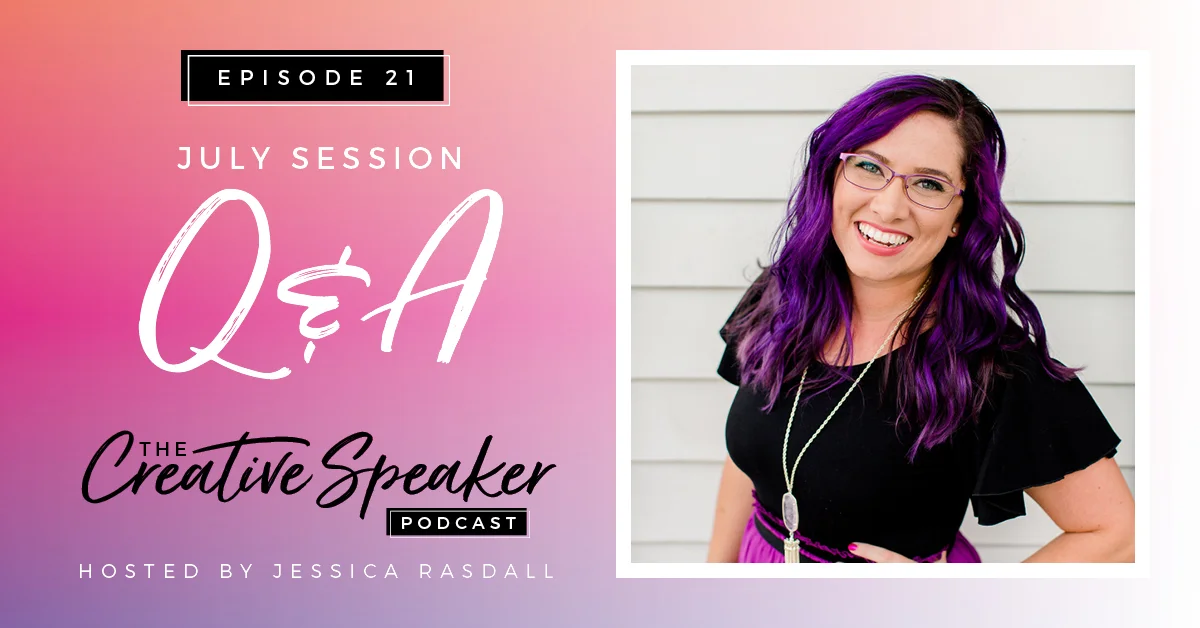 Welcome back to another Q&A session on The Creative Speaker podcast! I love sitting down to answer some of the most frequently asked questions I see come across our social media platforms. In today’s episode, I will be discussing how I handle my nerves before speaking, if being an introvert affects my speaking ability, why I have purple hair, and I will be telling you all about my dogs.This is going to be fun episode! I hope you enjoy!